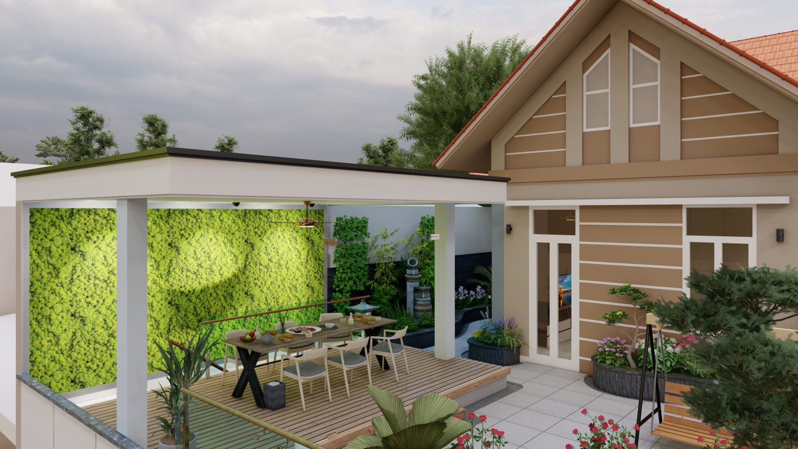 Sau quá trình tham khảo các phong cách thiết kế cùng sự tư vấn của BIM, anh Dương đã chọn cho mình phương án thiết kế căn nhà mái Nhật tân cổ điển 2 tầng mang đậm vẻ đẹp Á Đông.